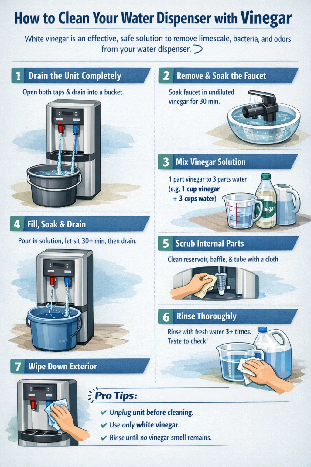 দ core vinegar cleaning method applies to all dispenser types, but the specifics vary. Understanding your unit's design ensures you don't miss any surface.