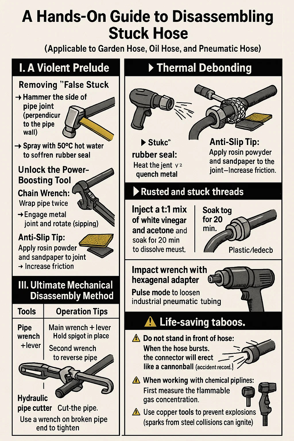 Uck আটকে থাকা রাবার সিল: 15 সেকেন্ডের জন্য কম সেটিংয়ে একটি তাপ বন্দুকের সাথে জয়েন্টটি গরম করুন the ধাতু নিবারণ করতে একটি আইস প্যাক ব্যবহার করুন → সঙ্কুচিত এবং রাবারকে আলাদা করুন।