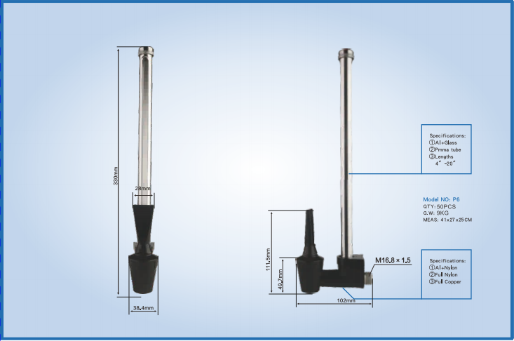 সাইট টিউব, স্পিগট, ওয়াশার এবং বাদাম সবই বিপিএ-মুক্ত উপাদান দিয়ে তৈরি। টিউবের জন্য বাইরের সুরক্ষা হালকা অ্যালুমিনিয়াম দিয়ে তৈরি করা হয়। তারা পুরো পণ্যটিকে একটি শক্তিশালী, টেকসই গঠন এবং পান করার জন্য নিরাপদ করে তোলে।
